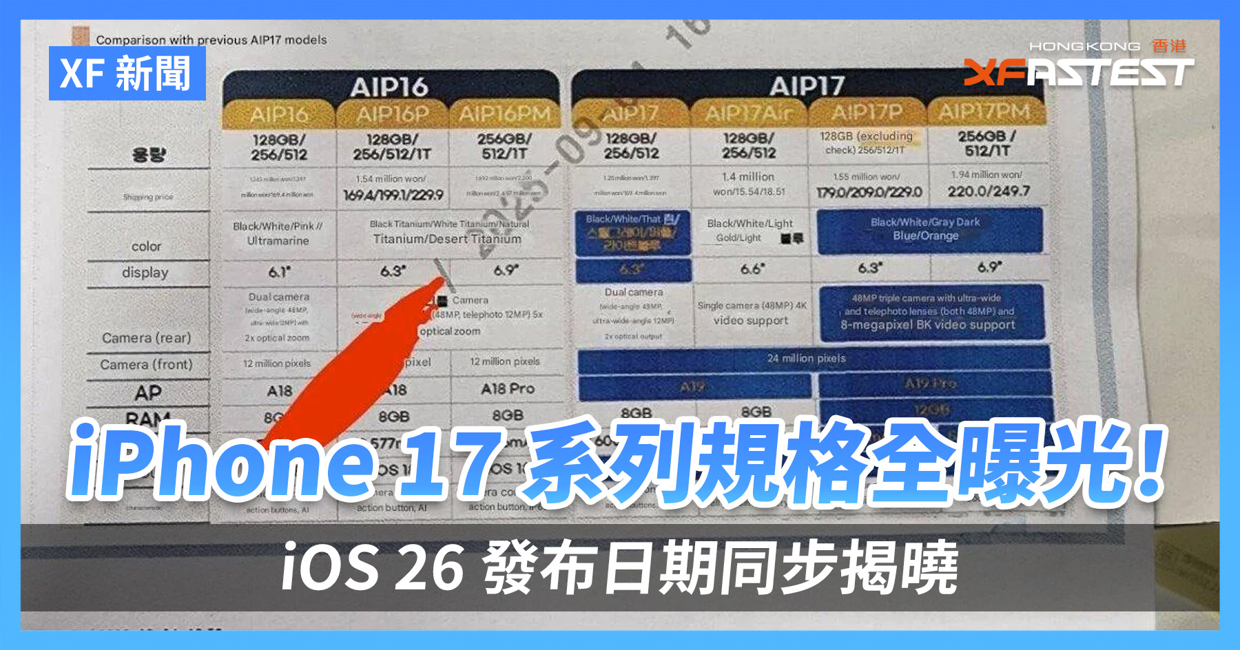 此外,Pro 機型將支持高達 8 倍光學變焦和 8K 視頻錄製,並引入 Vapor Chamber 冷卻技術,進一步提升性能和散熱表現。文件還透露了發布計劃:iPhone 17 系列將於 9 月 9 日發布,12 日開放預購,19 日正式上市;而 iOS 26 的正式版本預計將於 9 月 16 日推送。