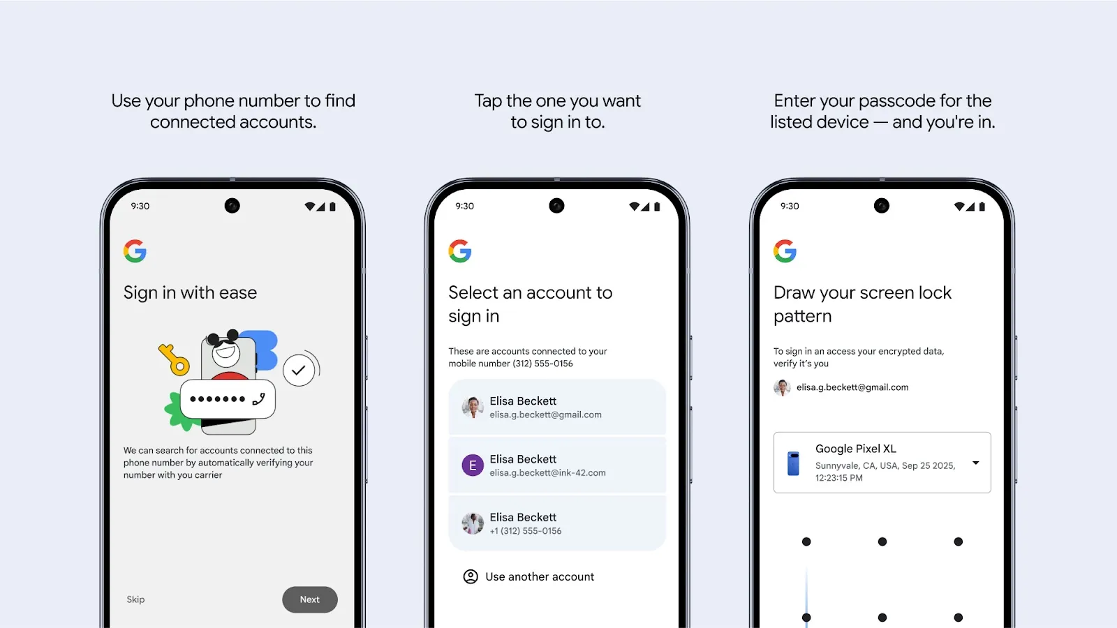 Google 還加入了手機號碼登入的帳戶恢復功能,適用於因設備遺失而無法登入的情況。此功能會自動識別與該號碼綁定的所有 Google 帳戶,用戶可使用先前設備的鎖屏密碼或圖案進行驗證,該功能已開始逐步在全球推出。