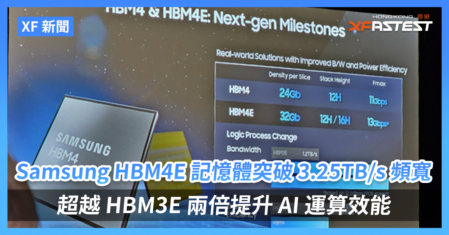 Samsung HBM4E 記憶體其頻寬高達 3.25TB/s,是目前 HBM3E 的 2.5 倍。近日 Samsung 在 OCP(開放計算計畫)全球峰會上展示了這一技術突破,證明其高頻寬記憶體(HBM)技術已邁向全新里程。