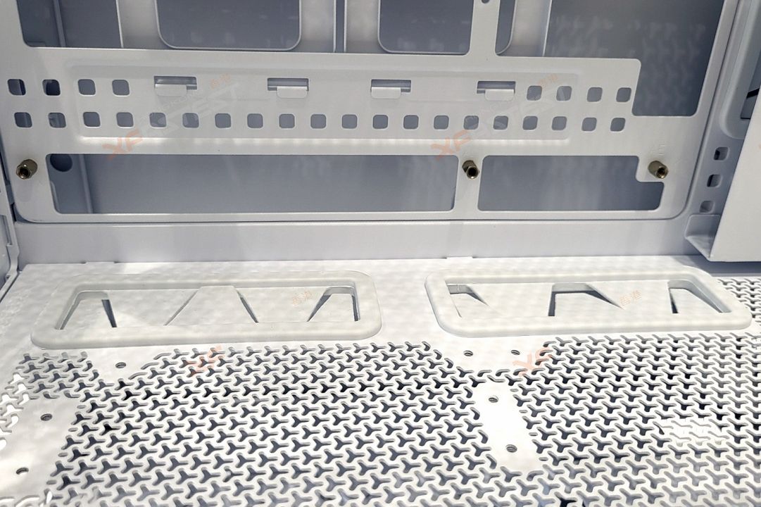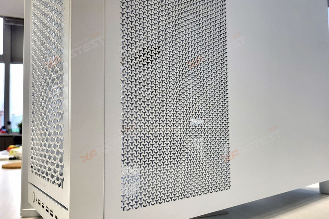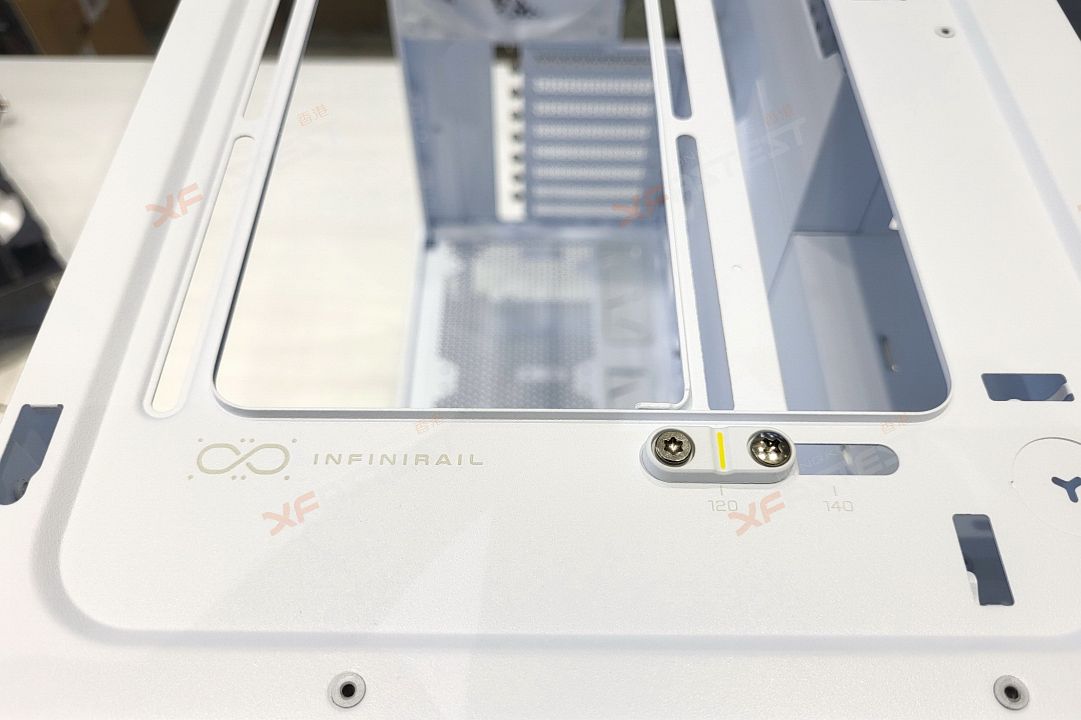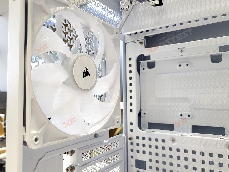 這款機箱的另一個主要賣點是能滿足不同的散熱方案,透過 InfiniRail 風扇安裝設計,透過調整安裝軌就能對應不同尺寸的風扇或冷排,讓玩家可安裝到精確的位置,例如機箱前方就可以安裝最多 2 個 200mm 風扇或 3 個 120/140mm 風扇,機箱頂部則可分別安裝最多 3 個 120mm 或 140mm 風扇或冷排。除此之外,玩家可以按照實際使用上的需要,在機箱的兩側前端、底部以至背面安裝更多的風扇以提升空氣對流,合共能夠安裝多達 14 個120mm 風扇或最多 3 個 360mm 冷排。FRAME 5000D RS ARGB 機箱同時附送了4 組 RS140 ARGB PWM 風扇,其磁性圓頂軸承設計確保在大空氣流量時仍能安靜運行。機箱的前面板亦採用全新的 3D Y 型鋼制設計,據稱能夠減少風阻,冷卻效果較 5000D Airflow 提升了 12%。除此之外,機箱兩側及頂部均有大面積散熱面設計,確保安裝在不同位置的風扇都能有最佳的吸風及送風效果。