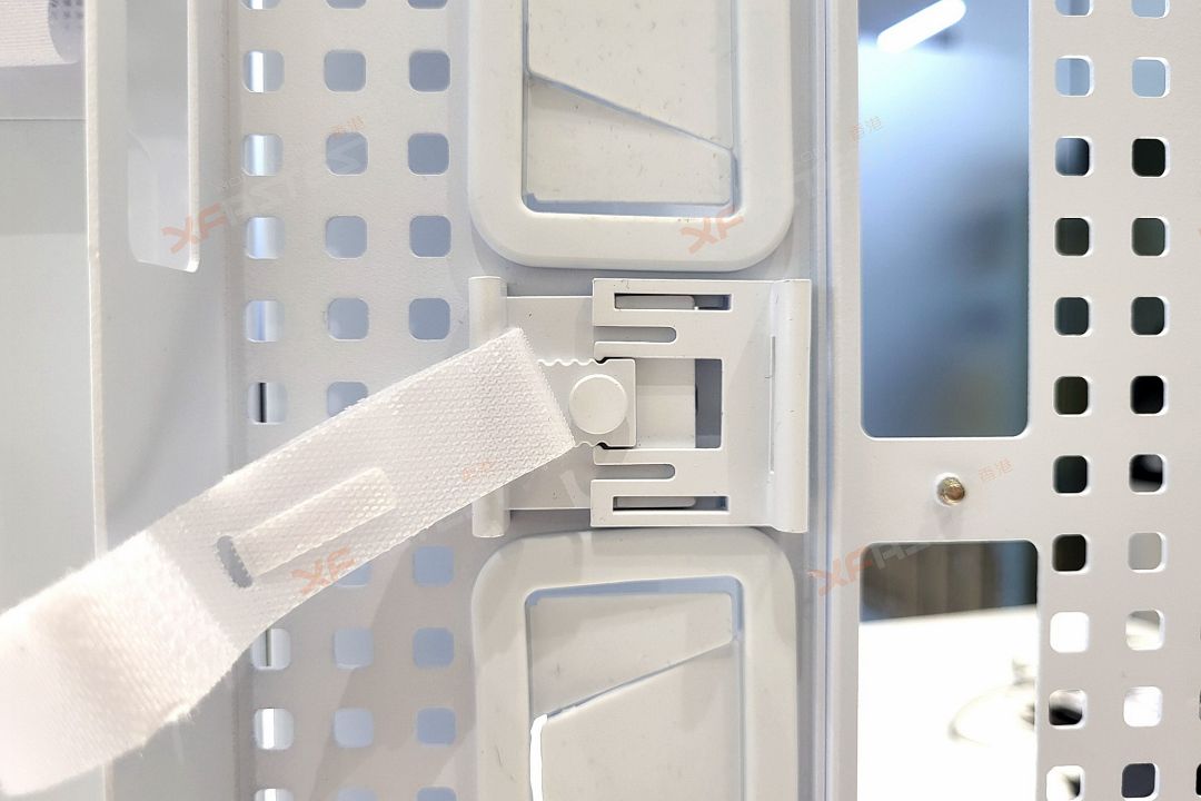 FRAME 5000D RS ARGB 還有一個全新設計就是 RapidRoute 2.0 線纜管理,最特別之處是當中的可拆卸可旋轉的綁帶扣設計,方便用家把綁帶扣擺放在最合適的位置,以配合不同「走線」的需要。配合全新的線纜束帶,能讓大多數多餘線纜輕鬆妥善收納,打造出整潔的內部環境,同時也確保良好的空氣流通。此外,機箱內部在不同位置加入走線孔,方便用家連接相對應的電源線或連接線並保持機箱內部的簡潔。