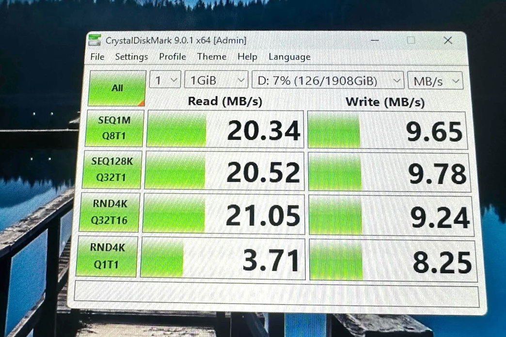 該用戶購買的假冒 Samsung 990 Pro 2TB SSD,從外觀到韌體檢測皆無破綻。Windows 和 CrystalDiskInfo 等工具均顯示該硬碟具備正確的產品名稱、容量與舊版韌體。然而,真相在檢測中逐步揭露:該 SSD 僅支援 PCIe 3.0 而非原版的 PCIe 4.0。更糟糕的是,讀寫測試顯示其速度極慢,僅能達到 20MB/s 的讀取速度和 10MB/s 的寫入速度,甚至遠低於 USB 2.0 的效能。