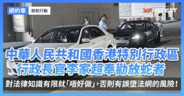 中華人民共和國香港特別行政區行政長官李家超今日在記者會上提醒市民,不應自行採取放蛇行動舉報非法白牌車司機。他強調,此類行為涉及法律風險,未經訓練及法律知識有限的市民應避免自行執法。李家超透露,運輸及物流局正在研究規範網約車的政策,預計今年7月將完成初步調研並向立法會匯報結果。