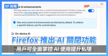 [XF 新聞] Firefox 推出 AI 關閉功能 用戶可全面掌控 AI 使用提升私隱